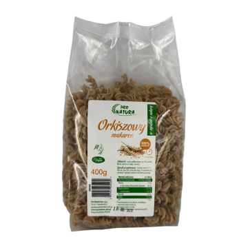 Orkiszowy makaron powstaje z mąki orkiszowej, uzyskiwanej z ziaren orkiszu, często nazywanego „zbożem przyszłości”. W starożytności stanowił podstawę diety ówczesnych ludzi. Proces produkcji jest zbliżony do wytwarzania makaronu pszennego, jednak wykorzystanie orkiszu nadaje mu wyjątkowy smak. Do podstawowych etapów produkcji należy mielenie ziaren orkiszu, a więc uzyskanie odpowiedniej struktury. Następnie przygotowuje się ciasto poprzez połączenie mąki z wodą (czasem również z jajkami, jeśli jest to makaron jajeczny). Gdy jego konsystencja będzie już elastyczna, następuje wałkowanie ciasta na cienkie płaty, które następnie kroi się na pożądane kształty makaronu. Można także przecisnąć ciasto przez specjalne formy, które nadają kształt świderków, rurek czy nitek. Gotowy makaron orkiszowy jest suszony, aby zapobiec pleśnieniu i sklejaniu się podczas przechowywania. Wysuszony makaron jest pakowany i trafia do sprzedaży. W ofercie naszego sklepu Pro Natura znajdziesz również makarony razowe, które powstają z mąki z pełnego przemiału, co oznacza, że do ich produkcji używa się całego ziarna, włącznie z łuską i zarodkiem, które są bogate w błonnik i witaminy. Wybieraj bio makarony, które wytwarzane są z wysokiej jakości, ekologicznych składników, bez dodatków pestycydów, które niekorzystnie wpływają na organizm.
